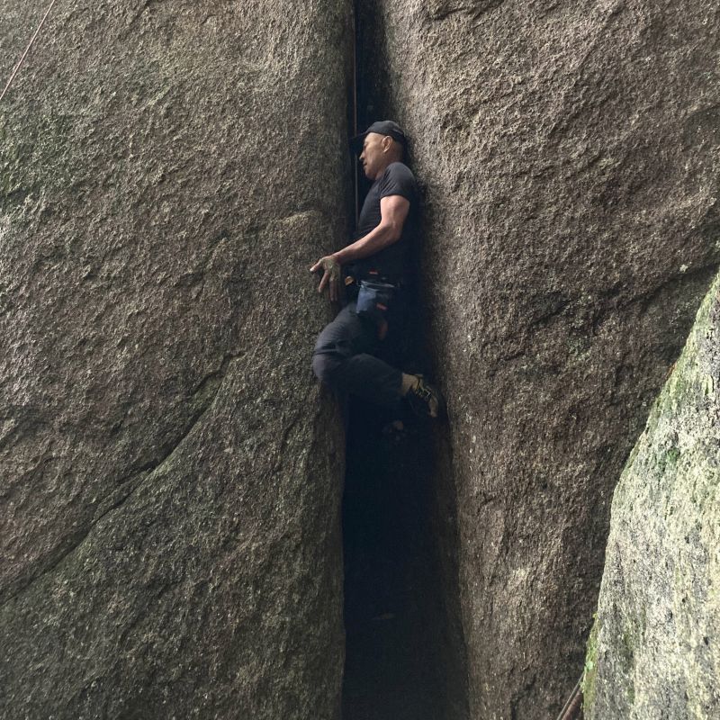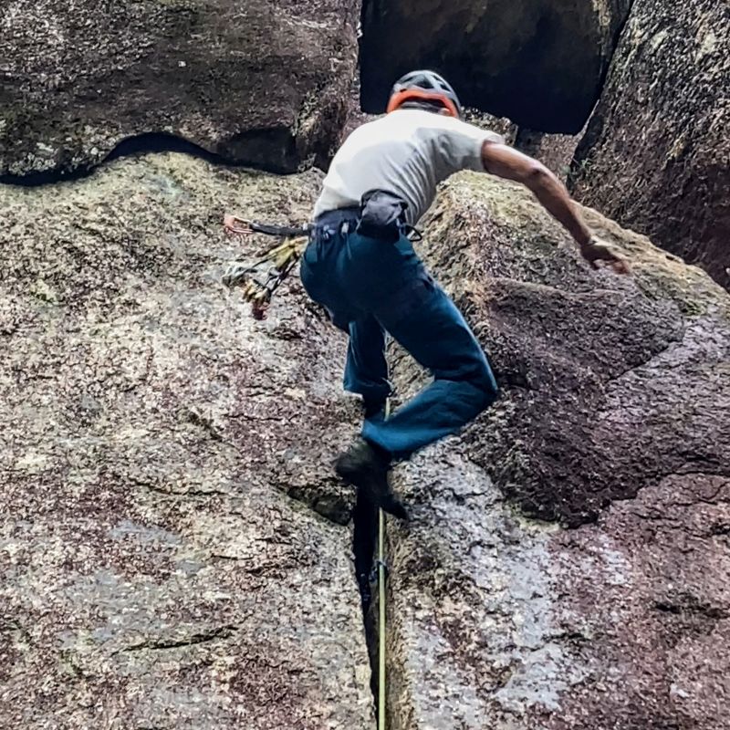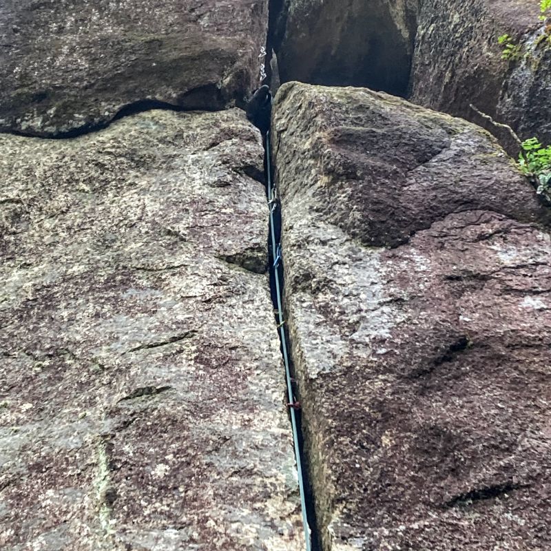5.10bのワイドクラックと言っても、核心ムーブがワイドムーブではないクラックは結構多くあるみたいですが、このクラックはしっかりしたワイドの5.10bだそうで、ちょっと自分にはまだ早いのではないかとも思いましたが、ちょうど近くにあったので、この機会にトライしてみることにしました。