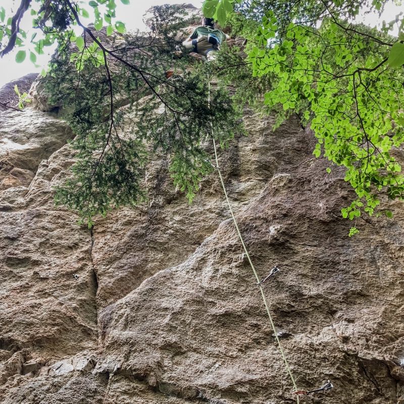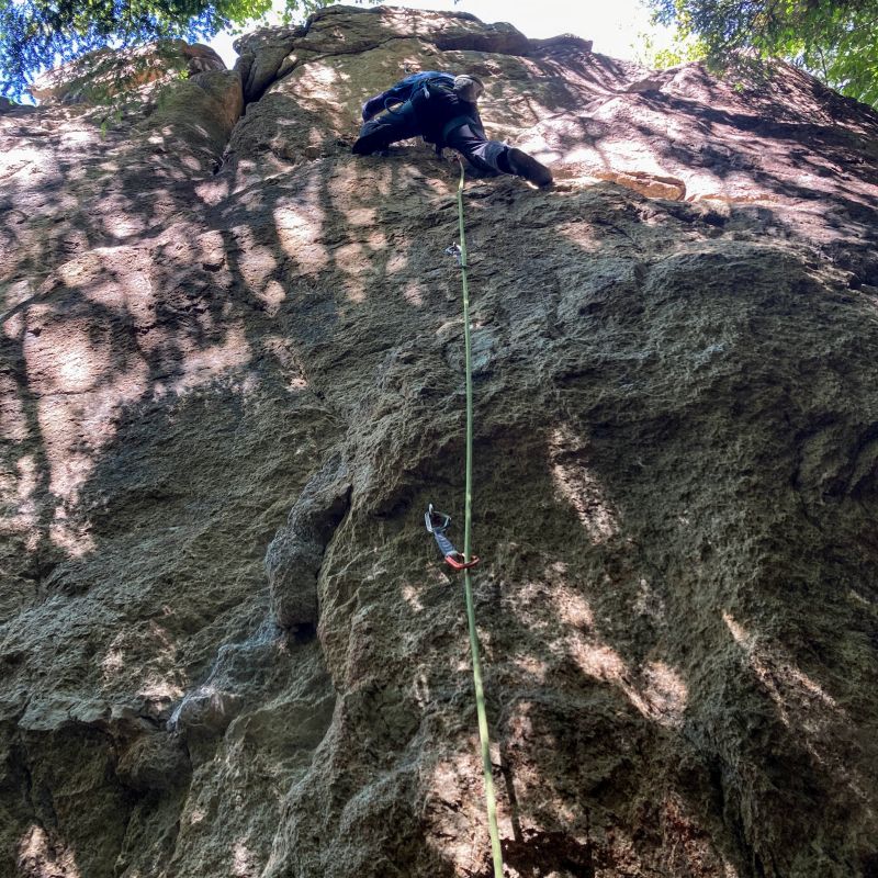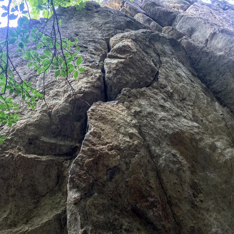とにかく長いですが、奇跡的に良い感じのホールドがずっと繋がっていて、岩に導かれるままに登っていったらオンサイトできました。