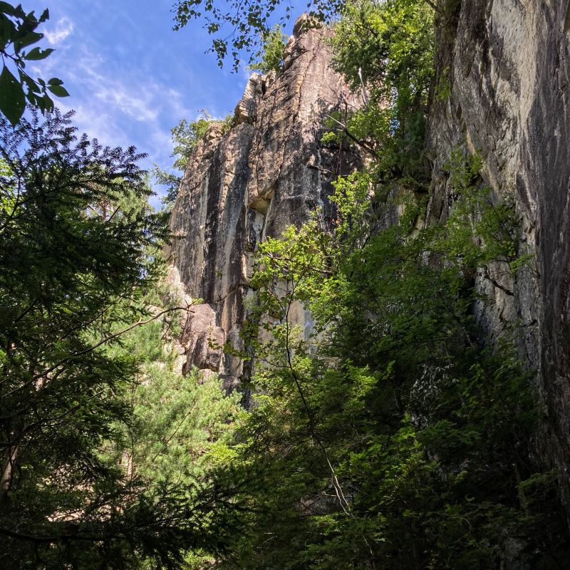 この日は午後から雨の予報でしたが、兄岩の東面は多少雨が降っても大丈夫らしいので、兄岩でスポートルートを登ることにしました。