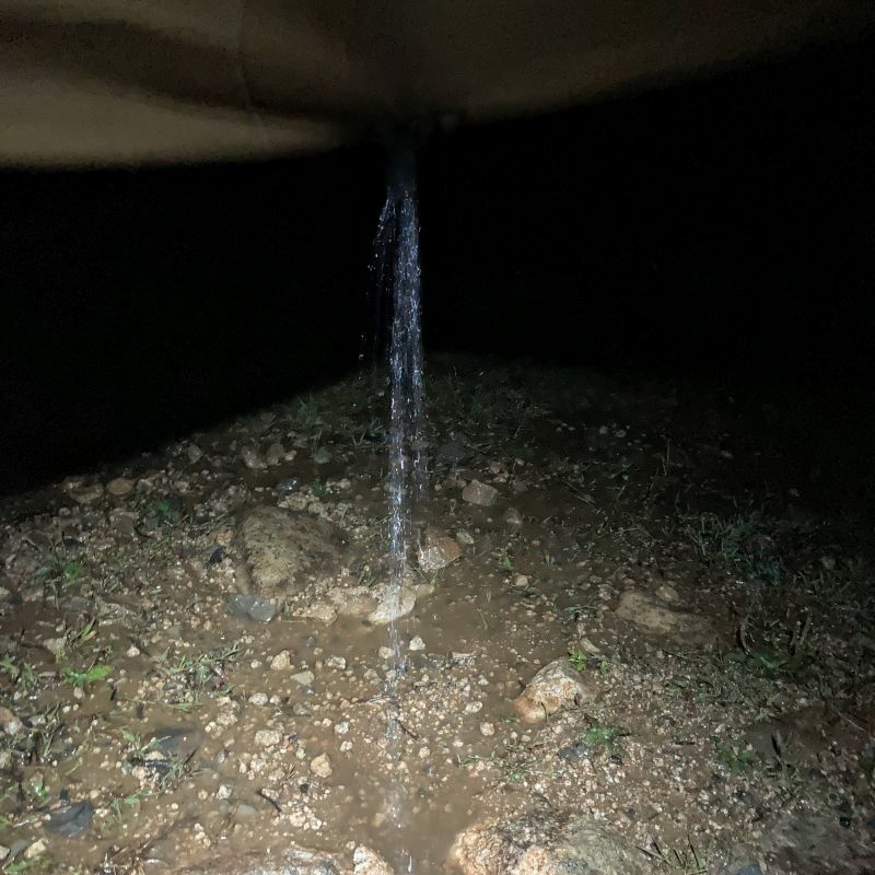 3度目の雨は豪雨と言っていいほどの強さで、バチバチと大粒の雨がタープを叩きつけ、何度も雷鳴が轟き、タープの端からは滝のように水が流れ落ちていました。