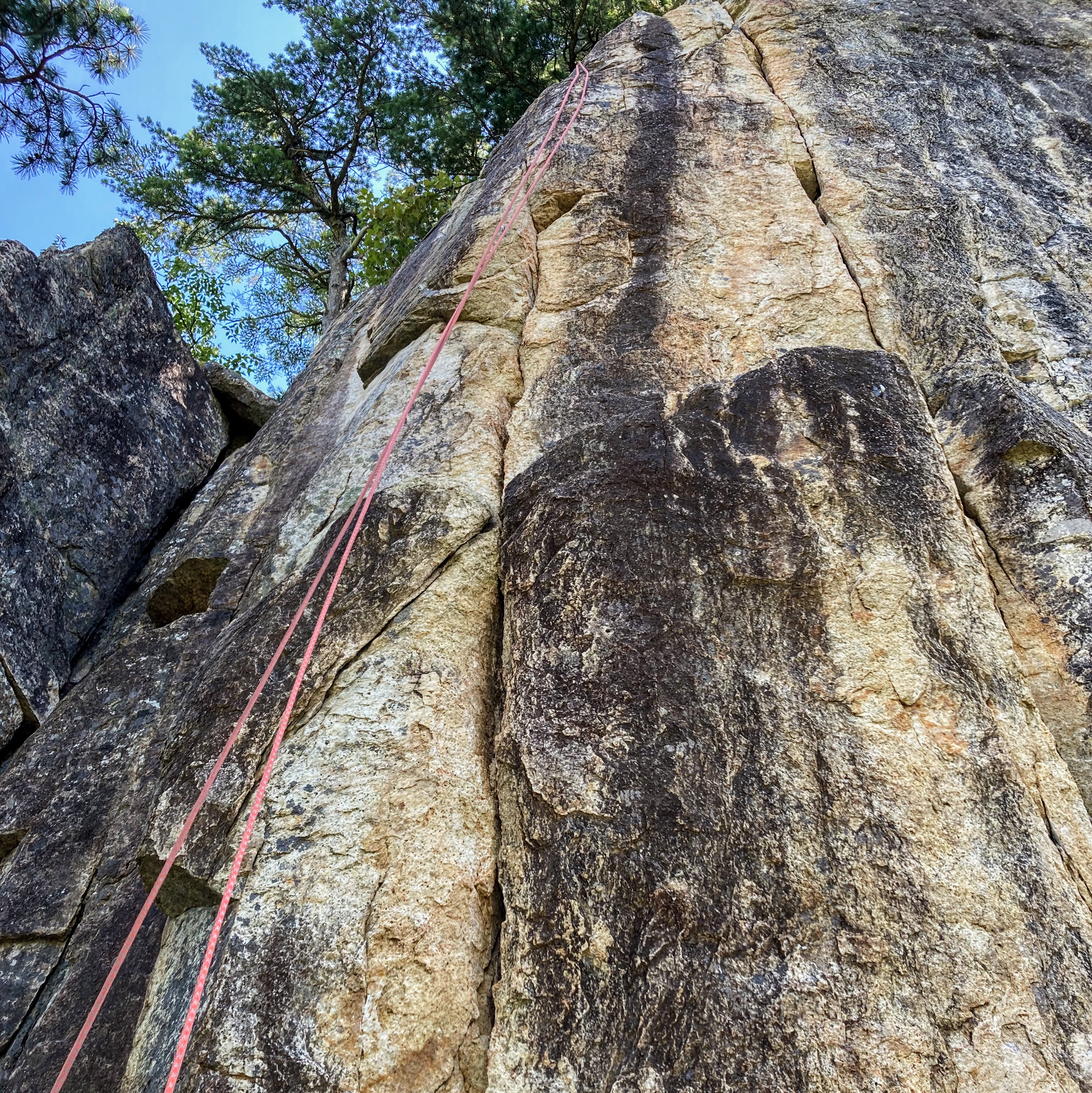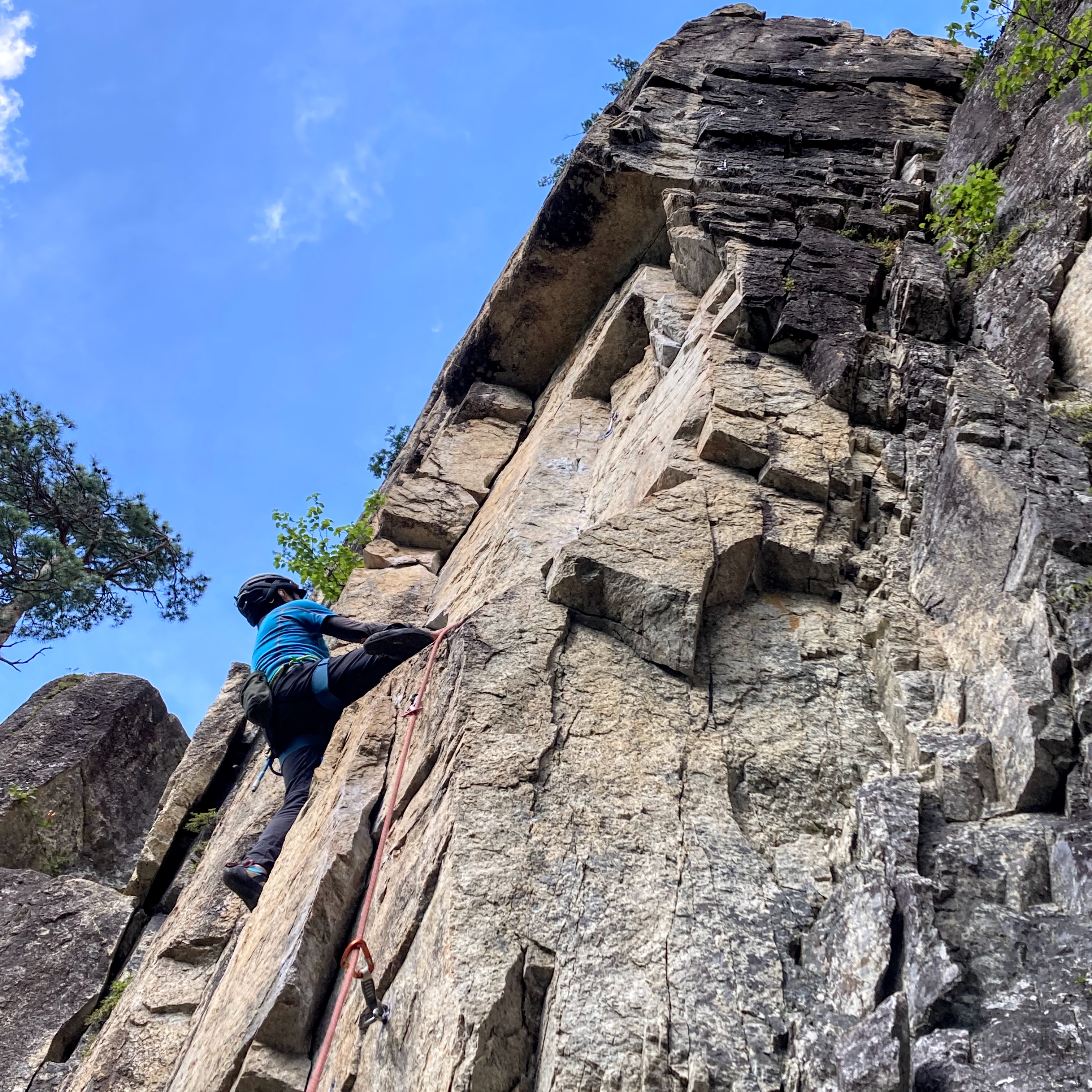 クラック部分はカムを3つぐらい使って登り、上部のボルトゾーンに入ってからも核心があって、一粒で二度美味しい感じの楽しいルートでした。