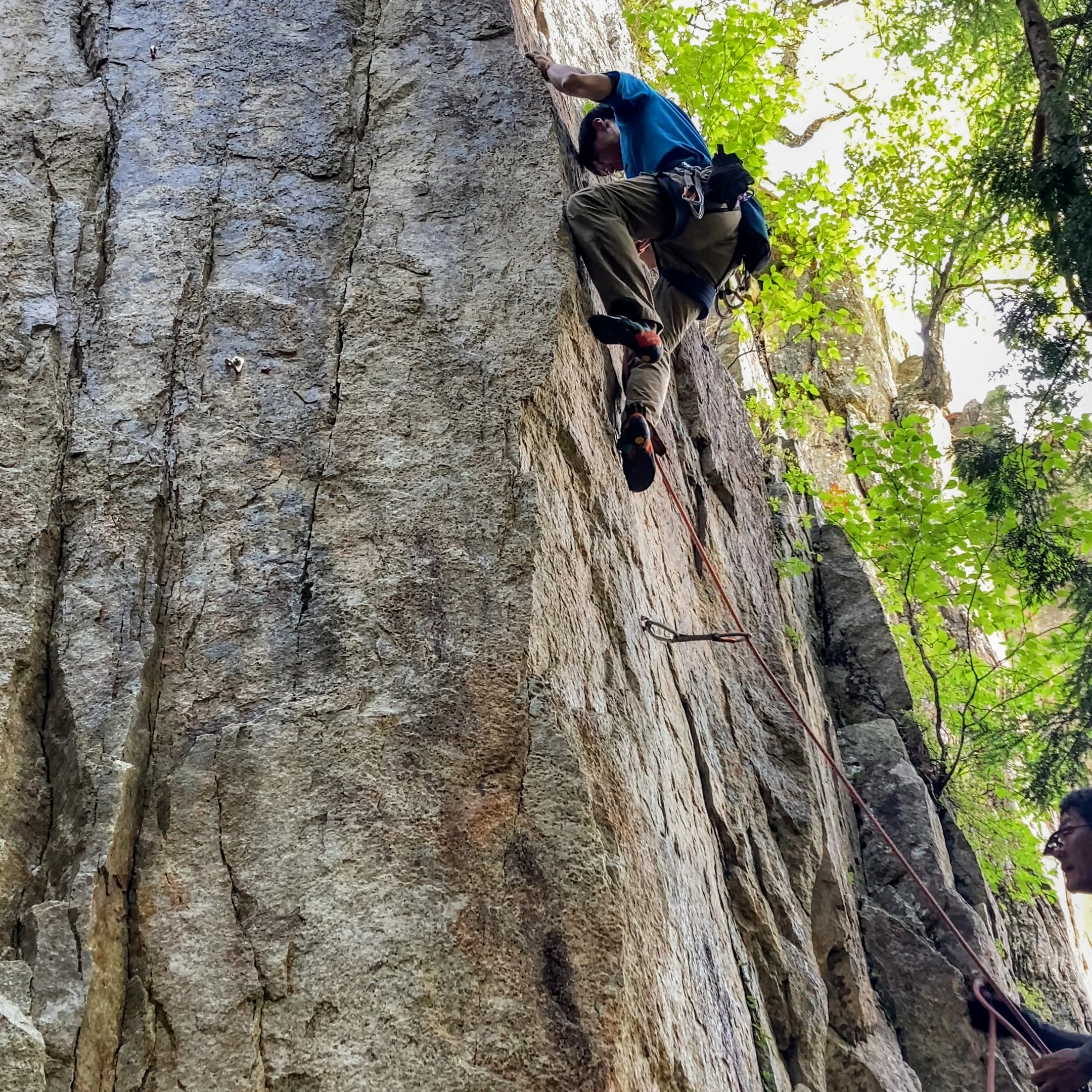 このルートは下半分はクラックで途中からボルトが打ってあり、小川山本ではクラックの右に1本目のボルトがあると書かれてますが、そのボルトは撤去されたみたいでした。