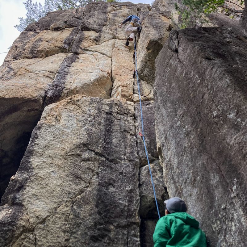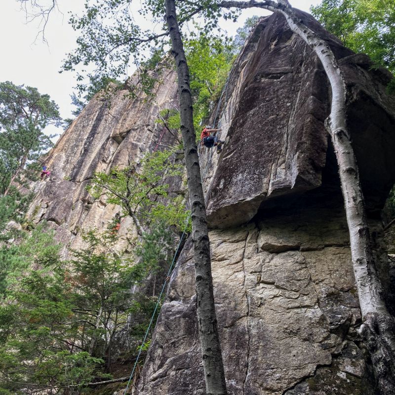 木のところに着いてクラックを近くで見てみたら思ったよりも細くて、ジャミングはちょっと難しかったですが楽しいクラックでした。