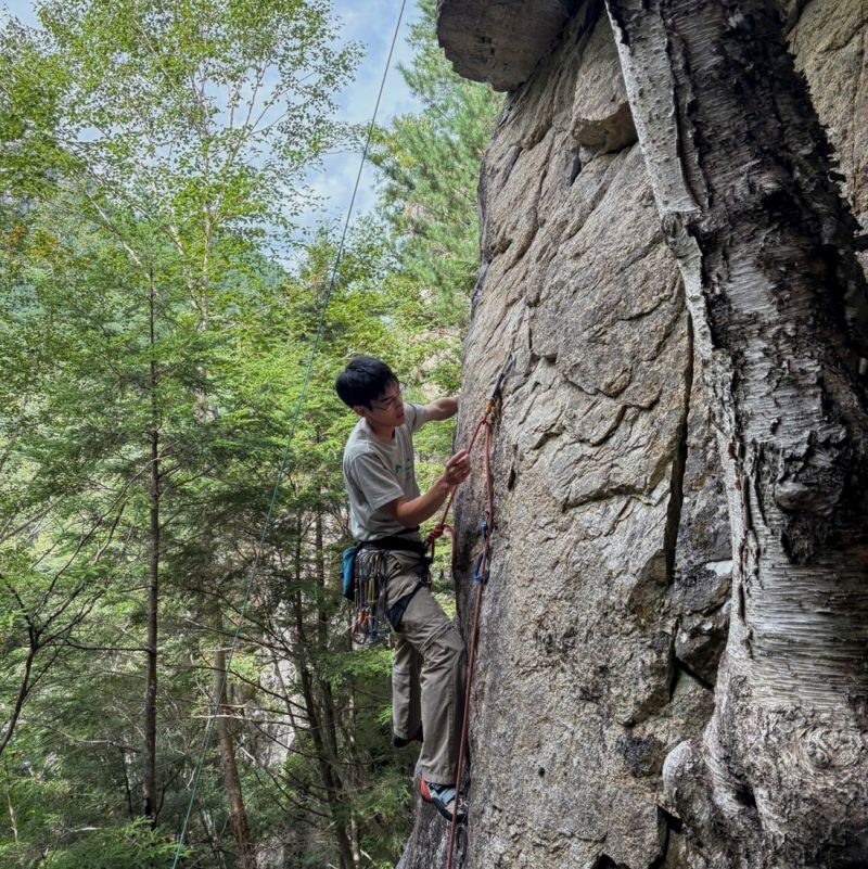 シンクラックに小さなカムやナッツを効かせてのハング越えは怖いですが、この威圧感のあるハングを、しっかりプロテクションを作って、ムーブを解決して突破していくのは、テンションを掛けながらでもとても達成感がありました。