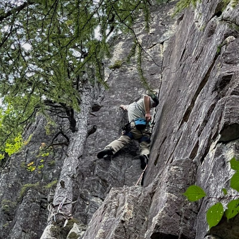 壁の途中に生えている木の右の凹角にあるコーナークラックで、まずは木のところまで登る必要があります。