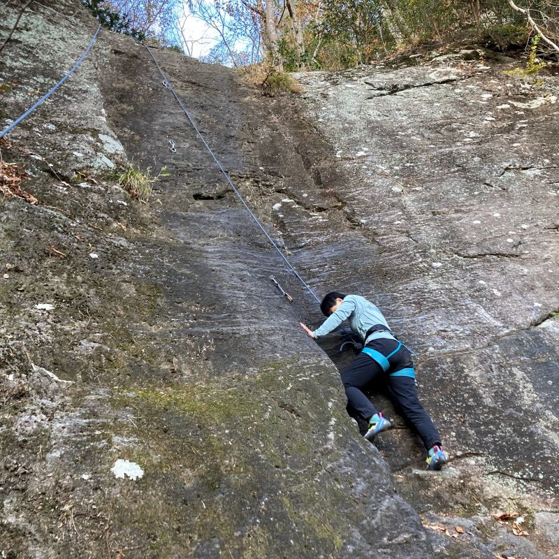 しかし2周で飽きたので、とりあえず一番簡単な「おたまじゃくし」にトップロープを張って練習することにしました。