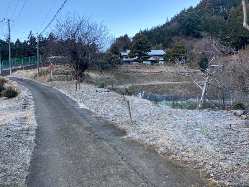 バス停を降りてから月夜野の集落に入り、集落の一番上のところから舗装路の脇の道に入って行きます。