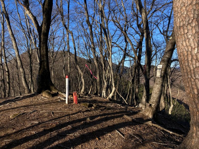 時間が間に合わなそうだったら、ここから棚ノ入山の方に行って無生野のバス停に降りるプランも考えてましたが、設定していたデッドラインの時間ちょうどぴったりに赤鞍ヶ岳に到着したので、このまま今倉山に向けて進むことにしました。