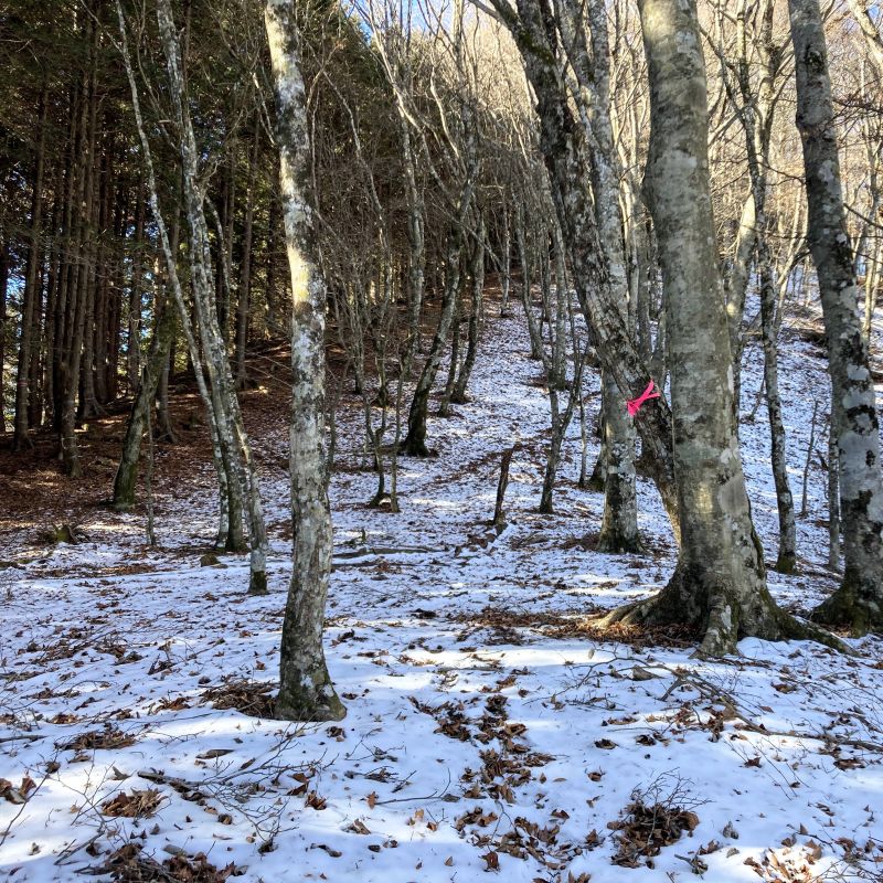 標高1200mを越えたあたりから、稜線の北側には年始に降った雪が残っていました。
