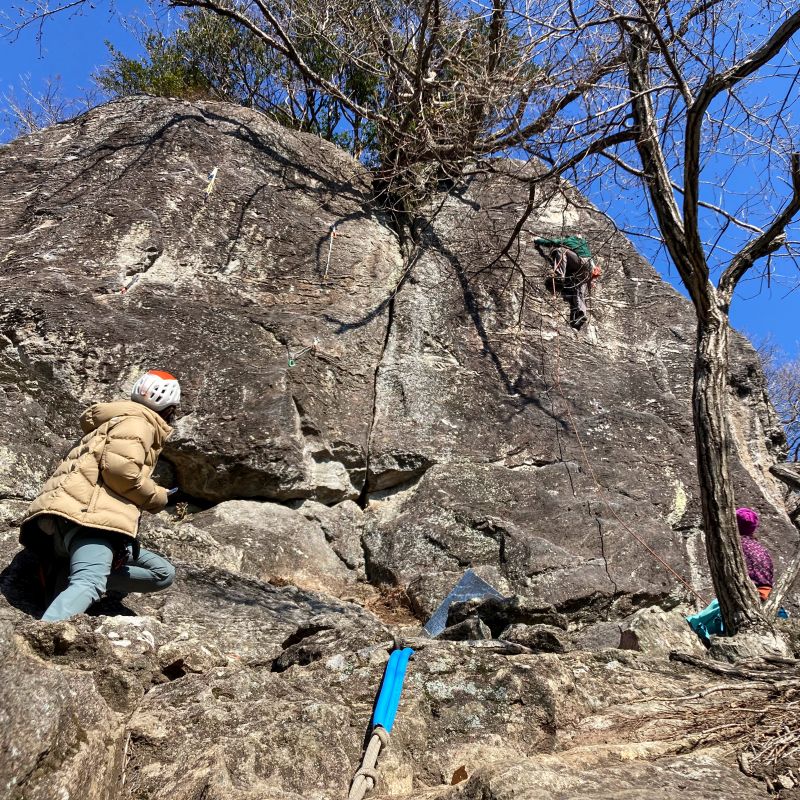 僕はまだ指が使えなくて登れないので、桃源郷で他のメンバーにトップロープを張ってもらって、皆の写真を撮ったり、トップロープで簡単なところを登ったり。